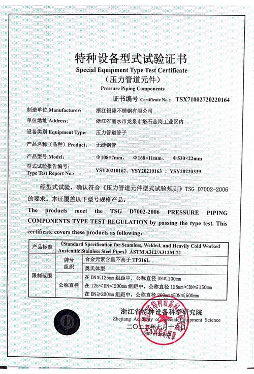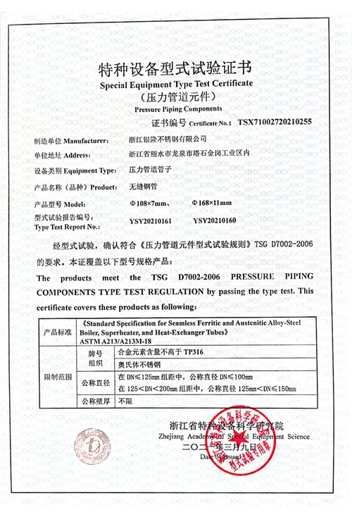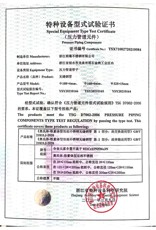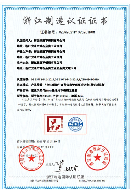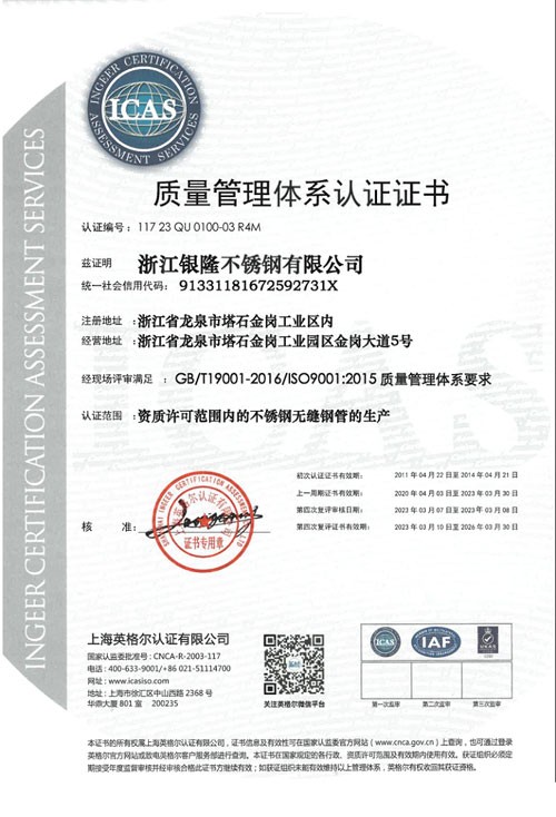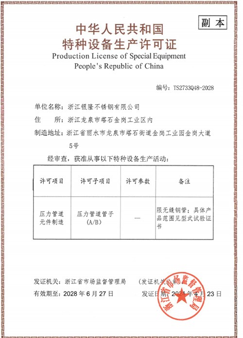 浙江銀隆不銹鋼有限公司創(chuàng)始于2006年,是一家專(zhuān)業(yè)生產(chǎn)不銹鋼無(wú)縫管的企業(yè)。公司位于浙江麗水市,企業(yè)注冊(cè)總資金貳億壹仟柒佰肆拾玖萬(wàn)元,擁有4家工廠(chǎng),占地總面積11萬(wàn)平方米,職工530人,年產(chǎn)不銹鋼無(wú)縫管5萬(wàn)噸。
