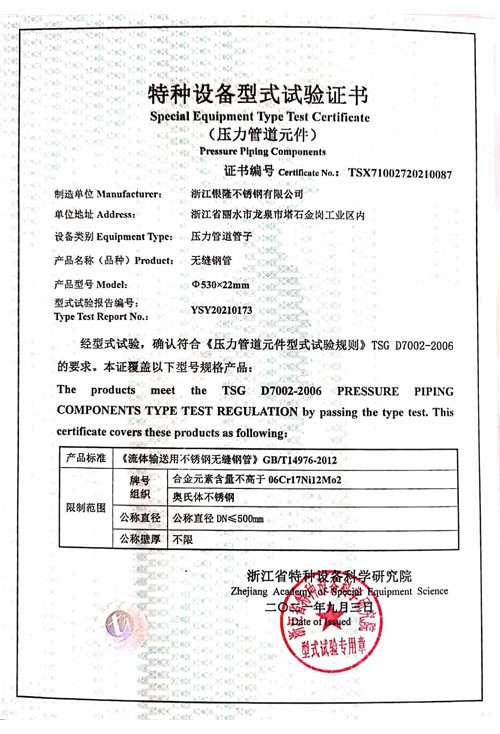 銀隆不銹鋼是國(guó)內(nèi)同行中生產(chǎn)和檢測(cè)設(shè)備先進(jìn)企業(yè)。生產(chǎn)設(shè)備有大小管冷拔設(shè)備60臺(tái),LG30冷軋?jiān)O(shè)備28臺(tái)、LG60冷軋?jiān)O(shè)備23臺(tái),LG120冷軋?jiān)O(shè)備1臺(tái),LG150冷軋?jiān)O(shè)備2臺(tái),LG220冷軋?jiān)O(shè)備1臺(tái),LG280冷軋?jiān)O(shè)備1臺(tái)。光亮退火爐3臺(tái),天然氣退火爐6臺(tái)。檢測(cè)設(shè)備有力學(xué)試驗(yàn)設(shè)備、金相設(shè)備,腐蝕試驗(yàn)設(shè)備,化學(xué)分析設(shè)備,超聲波探傷儀、渦流探傷儀、水壓試驗(yàn)儀等等。